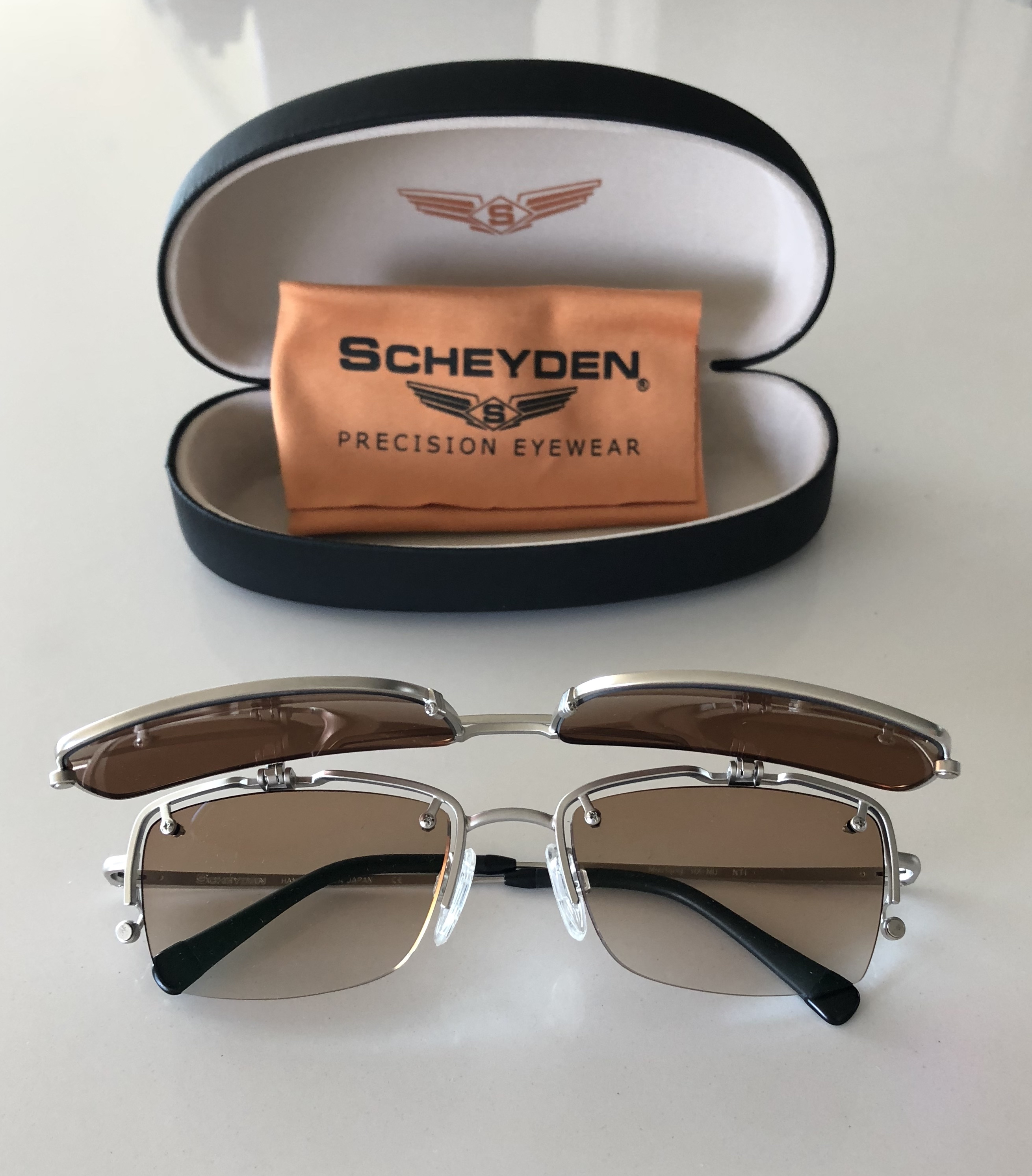 I went to Scheyden eyewear and asked them to design and build a one-of-a-kind dual Rx titanium “flip” frame for me like no other sunglass frame in the world for my December 2018 – February 2019 Polar Circumnavigation in the Citizen of the World.
